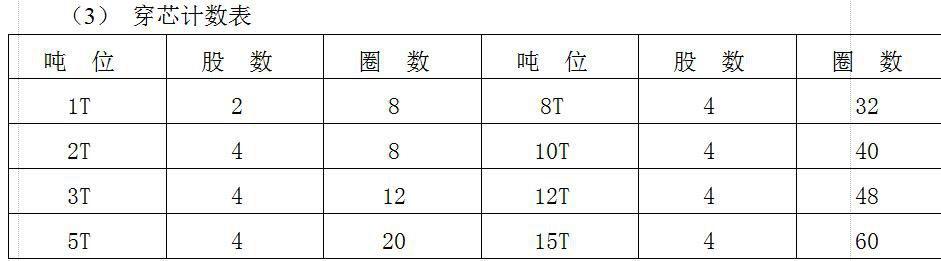 (3) 點動腳踏開關,按標準穿芯(標準如表)。如發現帶體緊繃,就應向前松,使其在不緊不松中穿芯、。