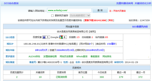通過對該企業網站的seo查詢我們可以大概了解到該網站的企業相關信息對我們評判這家企業的信譽度和產品質量非常重要。