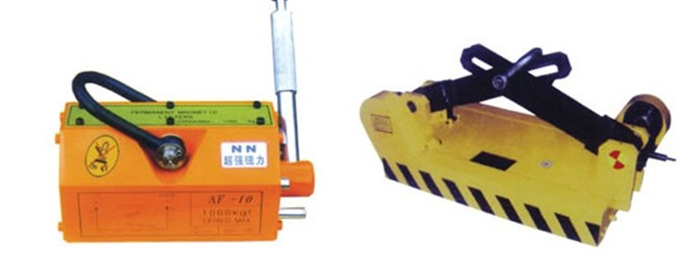 永磁起重器,又稱永磁吸盤、磁力吊、磁性起重鉗,主要特點是:體積小、吸持力強、不用電、幾乎無剩磁、安全系數高等特點。分為手動型和自動永磁起重器兩種,材料是釹鐵硼,最大拉脫力是額定載荷的2.8-4倍。手動型永磁起重器手柄開關有安全鈕,安全方便。需要人力搬動手柄,進行材料的吸附與釋放;自動永磁起重器無需人力扳動手柄。主要用于吊裝過程中與被吊裝工件的連接,用于移動鐵板、塊和圓柱形導磁材料的工作。操作方便、安全可靠、結構緊湊輕巧。廣泛應用在工廠、碼頭、倉庫、交通運輸行業中。改進裝卸搬運作業的工作條件,提高勞動效率。