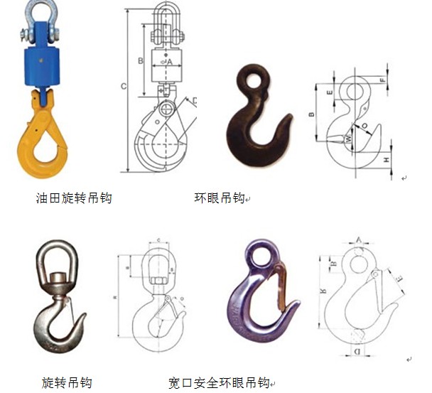 吊鉤分類極廣,包括:卸扣、吊環、 圓環 、梨形環、 長吊環、 組合吊環、 S鉤、鼻吊鉤、 美式吊鉤、 羊角吊鉤 、眼形滑鉤 、帶保險卡吊環螺釘 、鏈條卸扣等,具有獨特、新穎、質優、安全等特點。