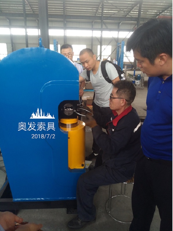 今日山東客戶來廠驗收其定制的小型開式鋼絲繩壓套機。本產品采用液壓原理,運行速度快、體積小、自身結構為開式,更便于鋼絲繩的上下取拿,加快了壓制速度,可單人操作節省人工成本,產品用于加工數量較大且直徑較小的鋼絲繩產品。