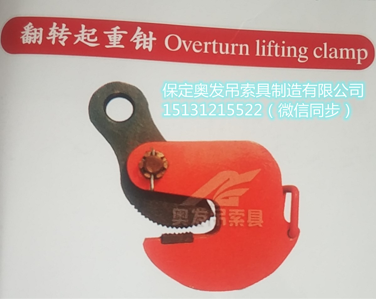 單只翻轉鉗允許起吊的重量為額定載荷。吊裝作業中可單只使用,水平吊運時必須加橫梁。