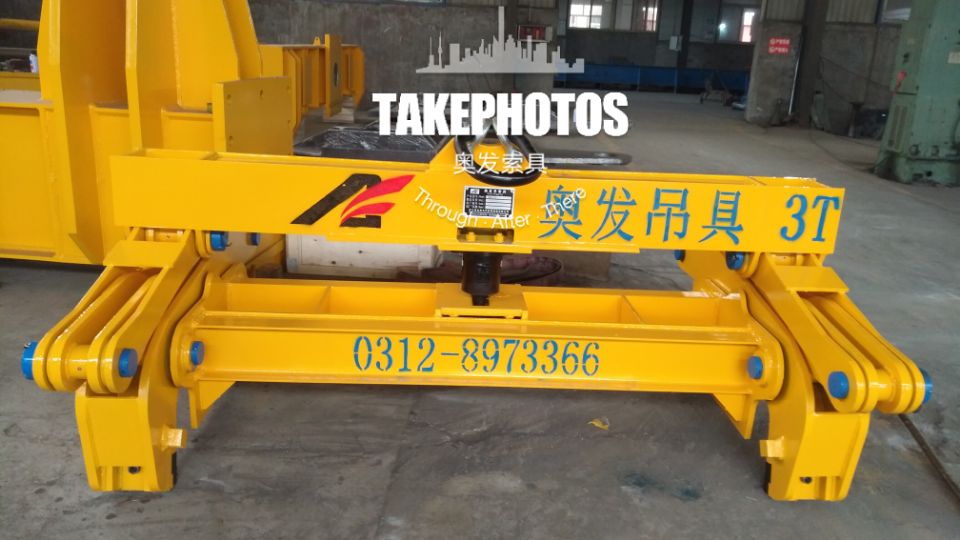 吊梁是與天車鉤相連的部件,有吊環卸扣式聯接、吊索具式聯接和吊耳式聯接三種結構。吊環卸扣式聯接吊軸,使吊具的受力情況改善,同時也避免了裝卸鋼坯時的脫鉤現象,降低了夾具本身的高度,有利于低矮的場所使用。吊索具式聯接吊軸,使夾具的受力較好,但吊具自身的高度大,需在高大的場所使用,在掛吊鉤時需用人工進行輔助掛鉤。吊耳式聯接吊軸,可由吊車司機直接掛鉤, 但在吊裝作業時需使鋼坯吊具著地,并下放吊鉤直至不受力為止,這樣,易導致吊車鉤脫鉤。