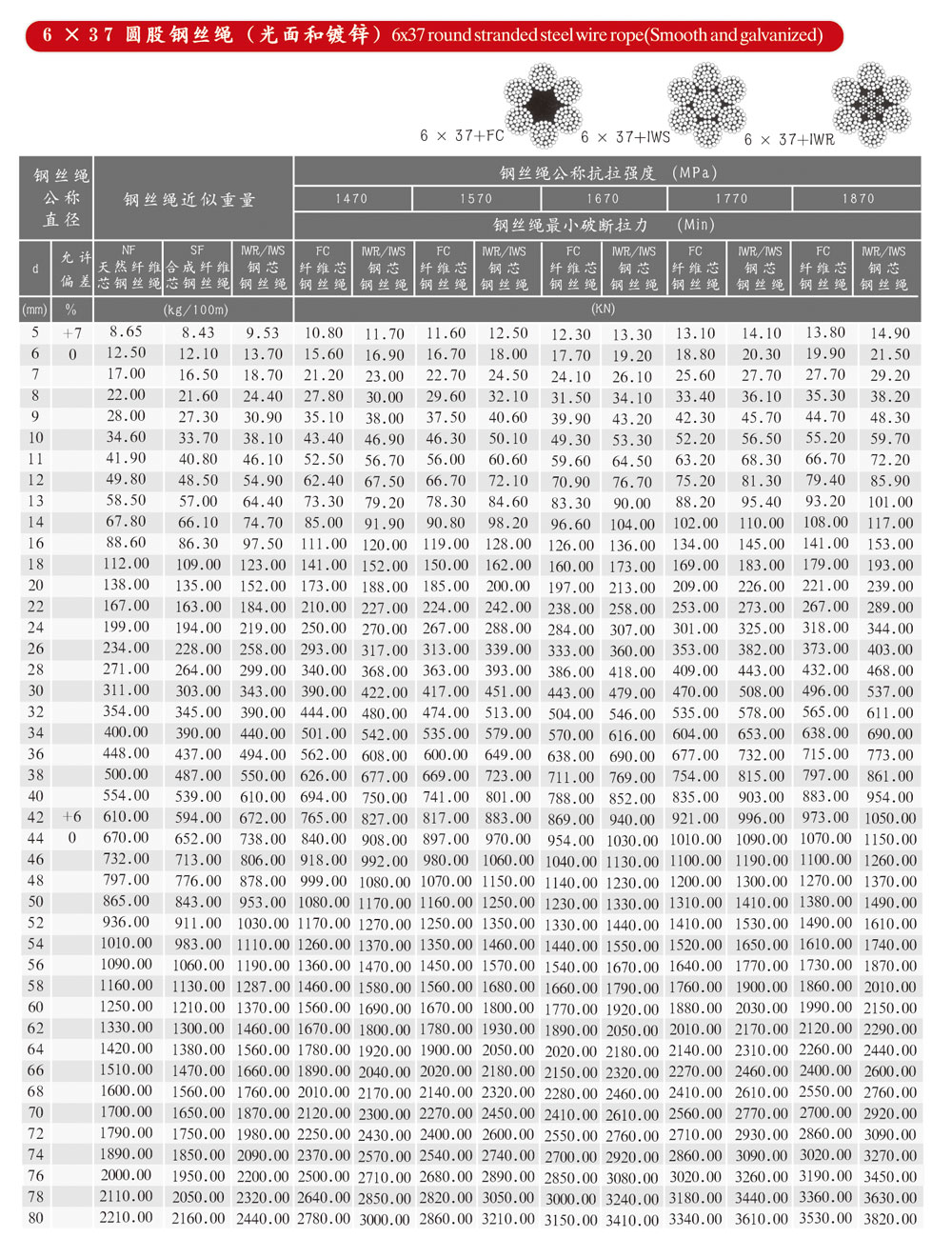 6×37圓股鋼絲繩(光面和鍍鋅)
