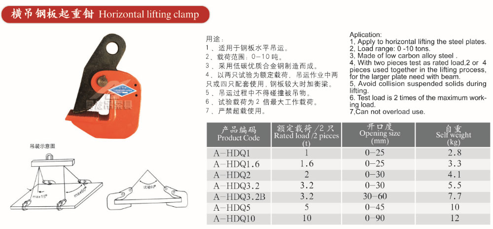橫吊鋼板起重鉗